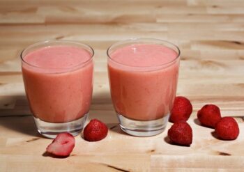 This is a great smoothie consisting of fruit, fruit juice and ice. I like to use whatever fresh fruits I crave that day. Any kind of berry,